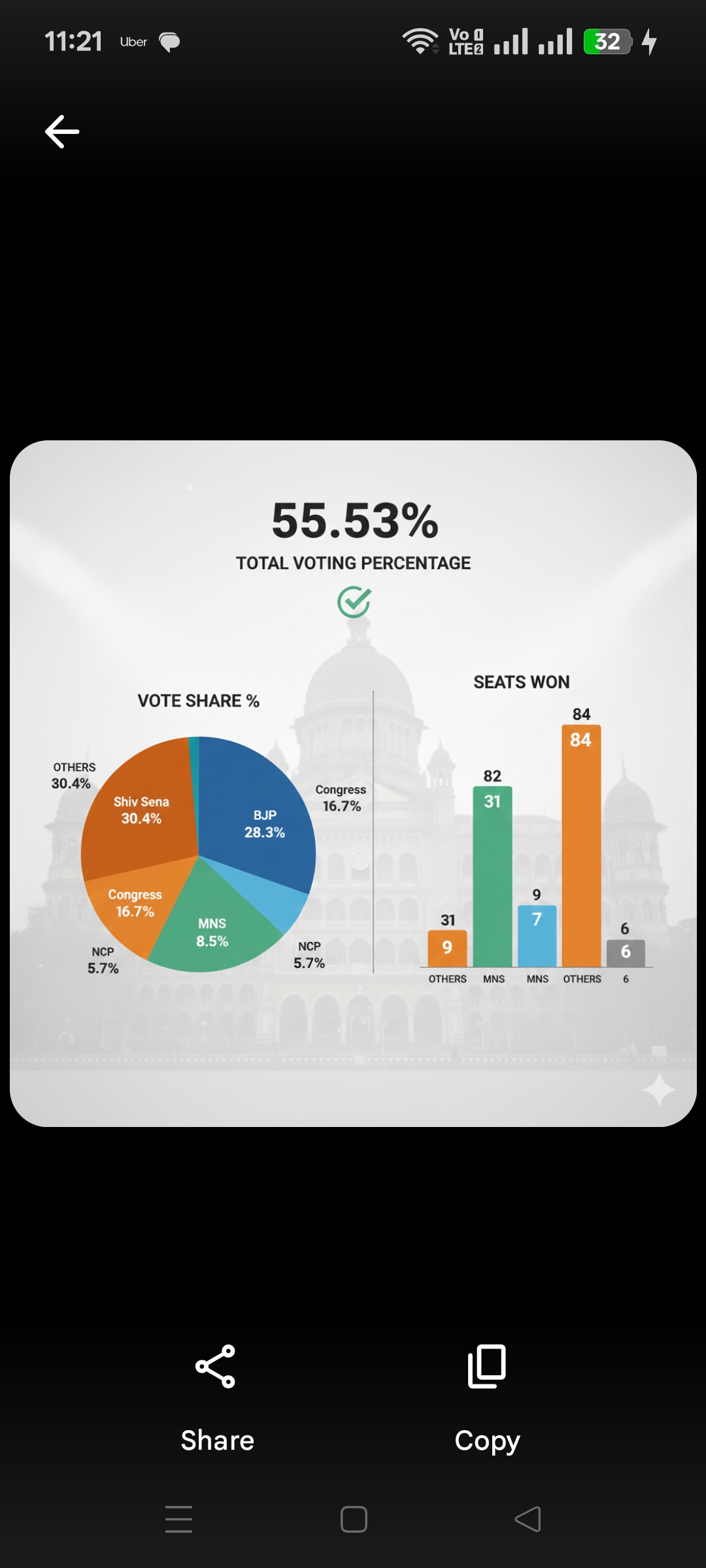 वहीं, कांग्रेस 52 से गिरकर 31 पर और राज ठाकरे की एमएनएस (MNS) 28 से लुढ़क कर महज 7 सीटों पर आ गई थी। इन आंकड़ों ने स्पष्ट कर दिया था कि मुंबई का मूड किस करवट बैठ रहा है।