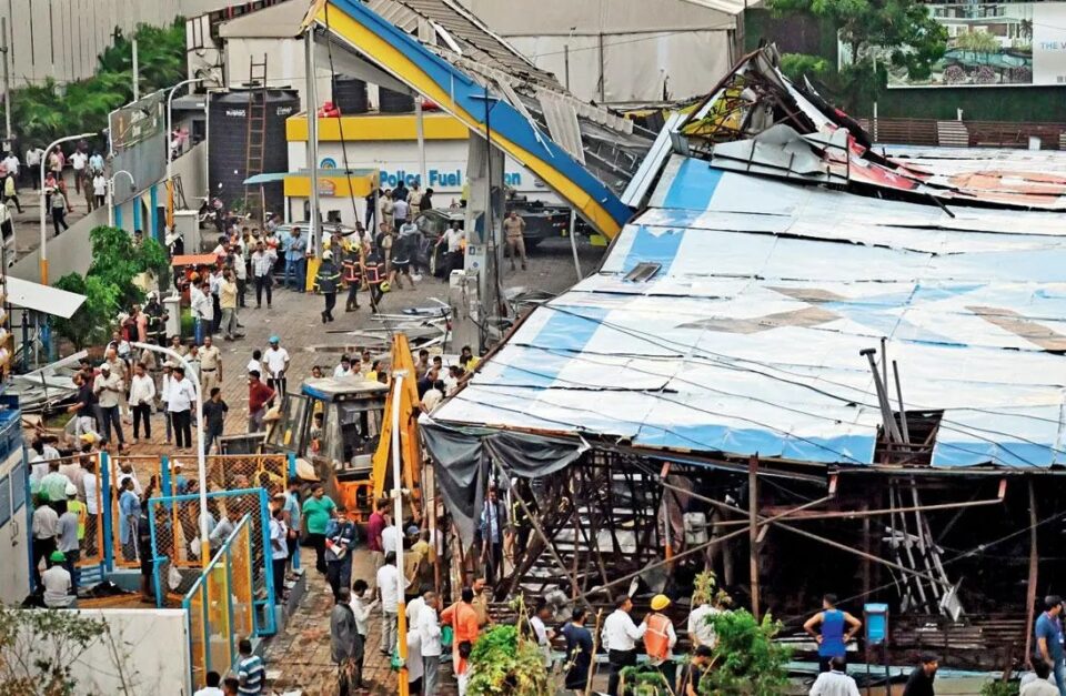 – घाटकोपर में हुआ हादसा, आंधी के कारण पेट्रोल पंप के पास लगा होर्डिंग गिरा