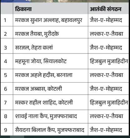 भारतीय सेना की कर्नल सोफिया कुरैशी और वायुसेना की विंग कमांडर व्योमिका सिंह ने ऑपरेशन की रणनीति और लक्ष्यों की जानकारी दी। उन्होंने बताया कि पीओके के मुजफ्फराबाद स्थित सवाई नाला में लश्कर का ट्रेनिंग सेंटर था, जहां सोनमर्ग और गुलमर्ग हमलों के आतंकी प्रशिक्षित हुए थे। इसके अलावा गुरपुर, कोटली, सियालकोट और बहावलपुर स्थित जैश और हिजबुल के ट्रेनिंग कैंप भी निशाने पर रहे।