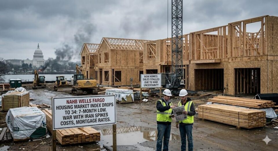 ✍️ प्रहरी संवाददाता मुंबई / नई दिल्ली / वाशिंगटन | पश्चिमी एशिया में ईरान के साथ जारी भीषण युद्ध ने अब अमेरिकी अर्थव्यवस्था के सबसे मजबूत स्तंभ ‘हाउसिंग मार्केट’ की नींव हिला दी है। नेशनल एसोसिएशन ऑफ होम बिल्डर्स (NAHB)/वेल्स फारगो इंडेक्स के चौंकाने वाले आंकड़ों के अनुसार, अप्रैल में होमबिल्डर सेंटीमेंट गिरकर 34 अंकों पर आ गया है, जो सितंबर 2025 के बाद का सबसे निचला स्तर है। लगातार 24 महीनों से यह सूचकांक 50 अंकों के ‘ब्रेक-ईवन’ पॉइंट से नीचे बना हुआ है, जो अमेरिकी रियल एस्टेट बाजार में गहरी निराशा और अनिश्चितता का साफ संकेत है।